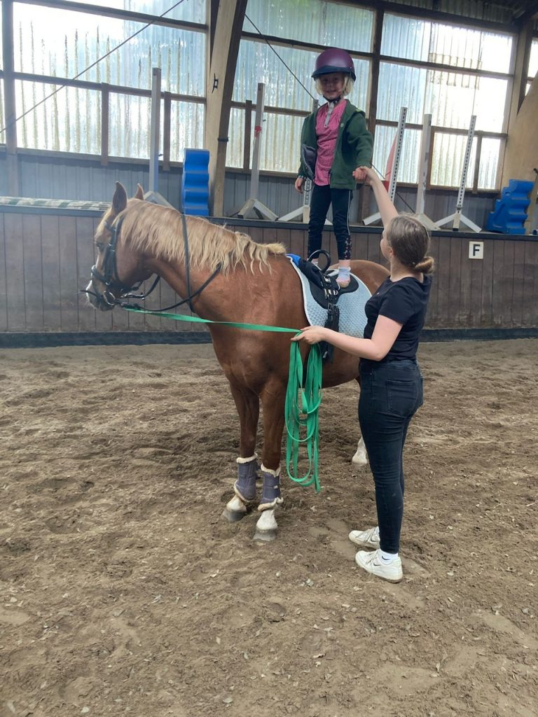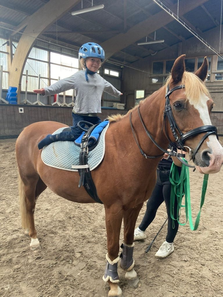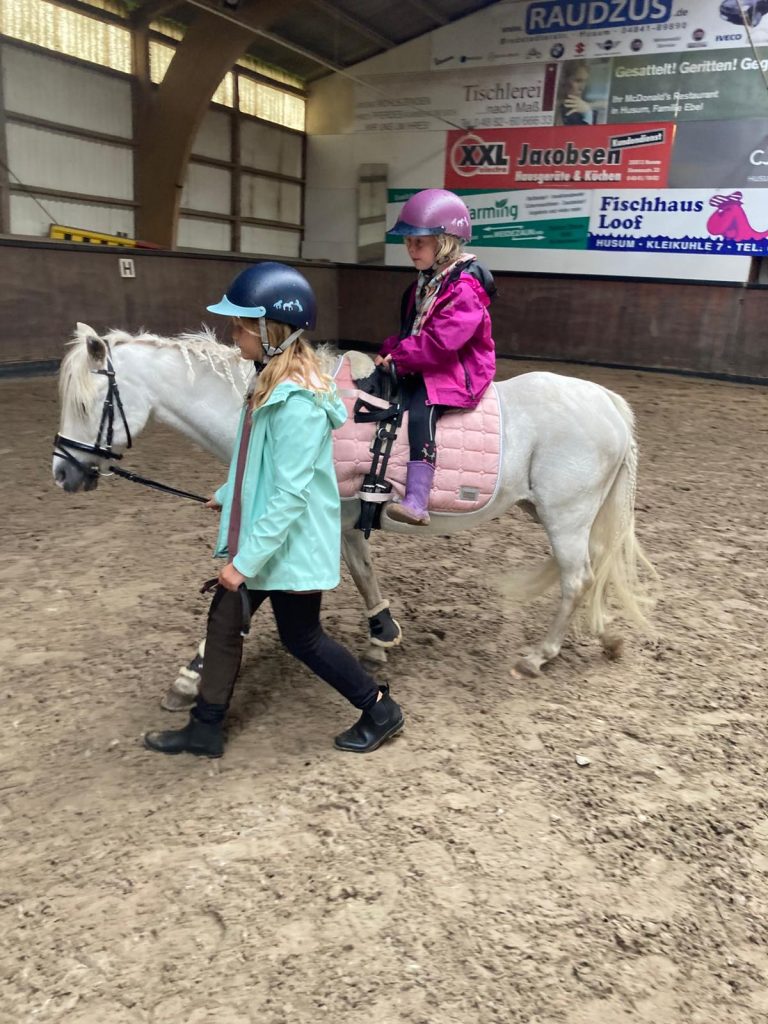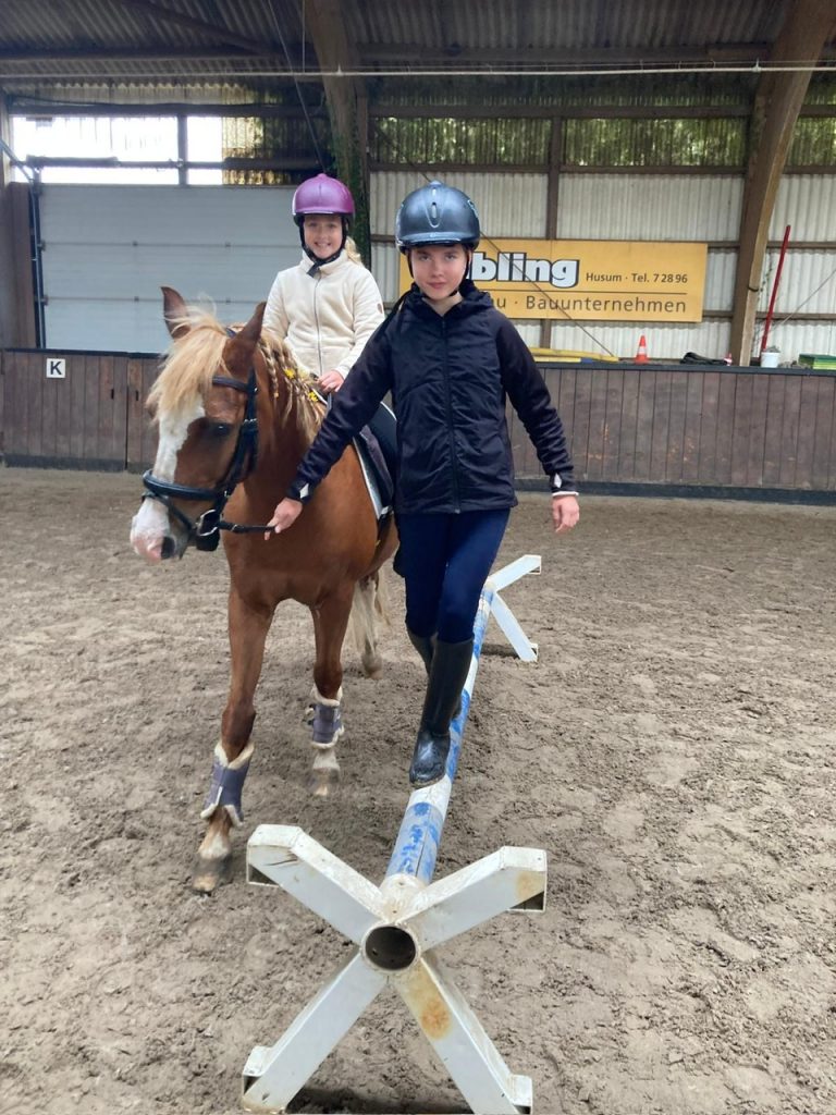 Mittwochs und donnerstags bieten wir Unterricht für Kinder und Jugendliche auf dem eigenen Pferd oder auf einem Schulpferd an.