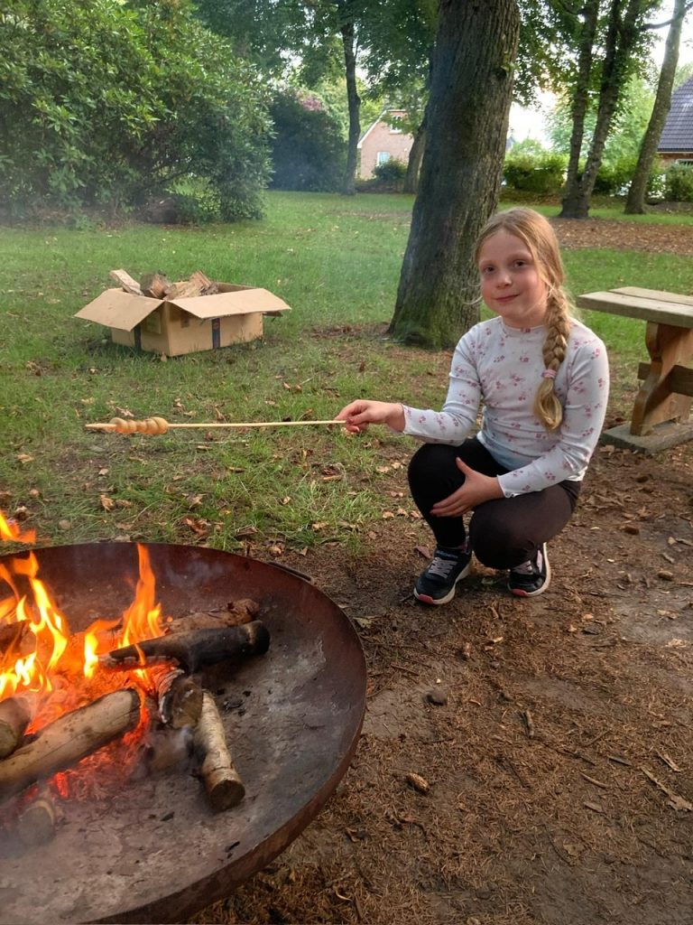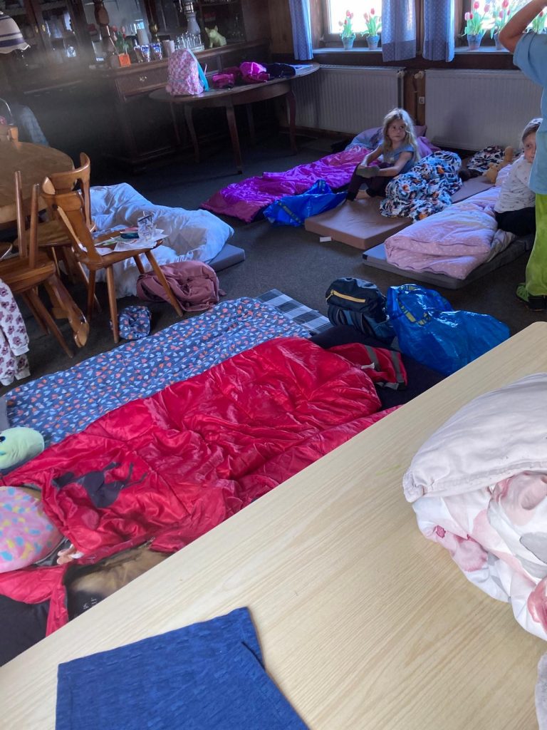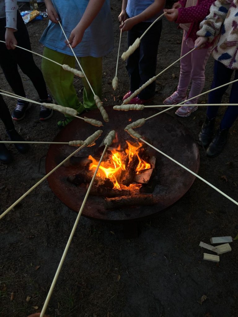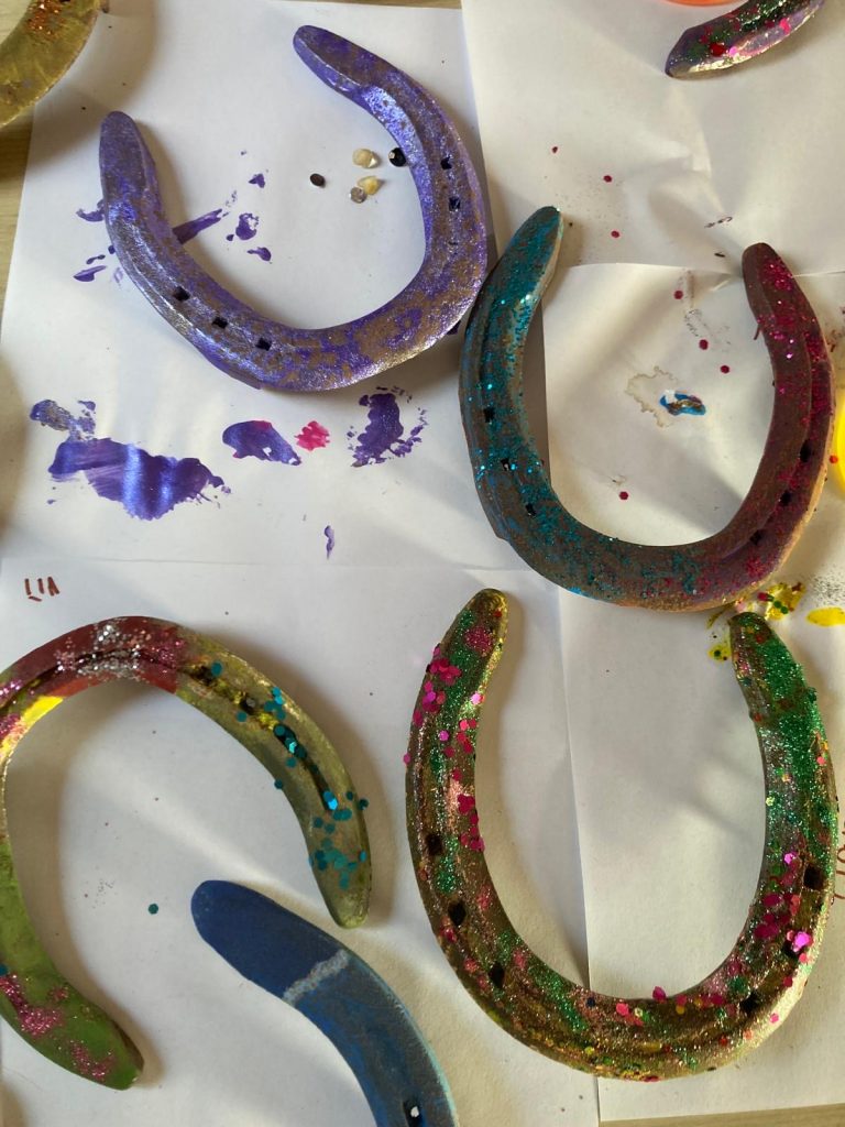 Anfang September gab es eine Übernachtung im Reiterstübchen mit Lagerfeuer und Stockbrot, Hufeisen bemalen und jede Menge Spaß: