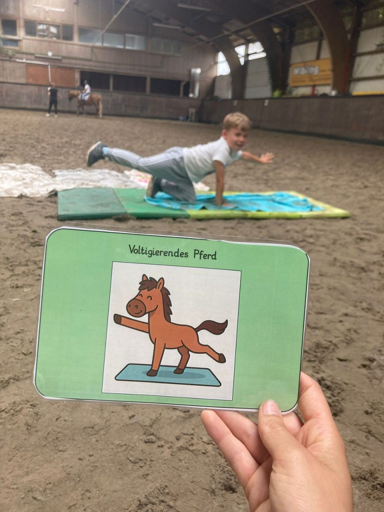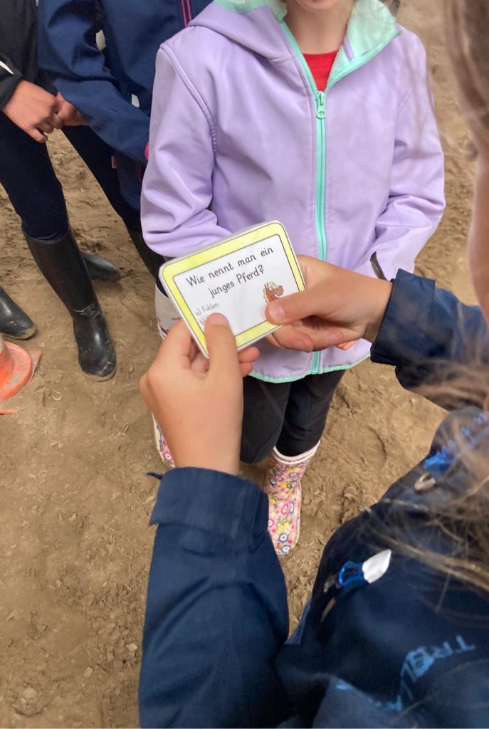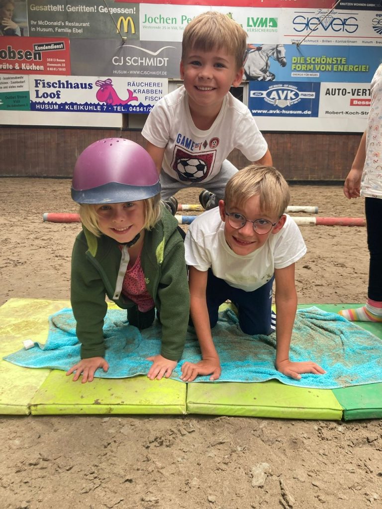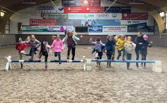 In den Schulferien finden auf dem Hof regelmäßig Veranstaltungen rund ums Pferd statt: Ende Juli ging es auf Schnitzeljagd mit dem Pferd (durch Sturm in die Reithalle verlegt):